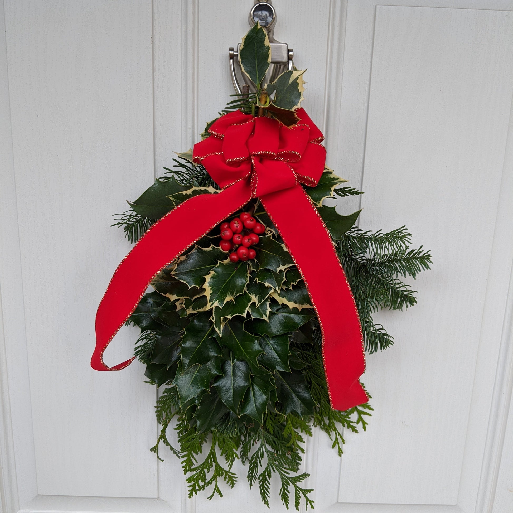 Bring timeless holiday elegance to your space with these evergreen and holly swags. Featuring lush seasonal greenery paired with striking holly berries, this expertly designed piece delivers authentic Christmas ambiance that endures throughout the festive season. Perfect for creating a welcoming focal point above doorways, along mantels, or framing windows, it combines traditional craftsmanship with lasting visual appeal.
